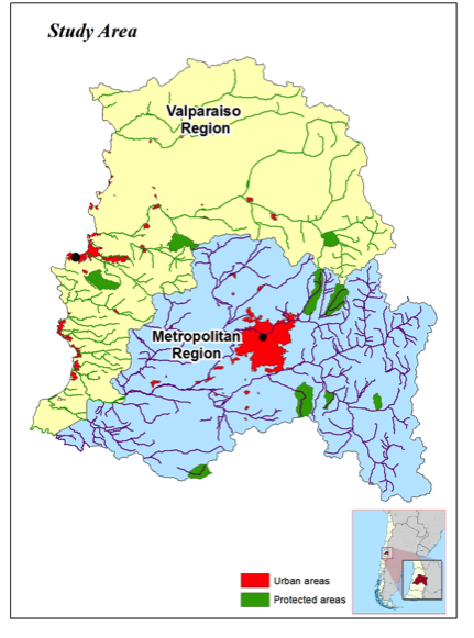 This is an ideal region for the study of ecosystem services as this region concentrates half of the Chilean population; human activities (e.g. mining, industry and agriculture) are impacting the supply of critical ecosystem services such as regulating services (e.g. water quality, air quality regulation, carbon storage and sequestration, erosion protection,), provisioning services (e.g. freshwater provision, fibre and fuel and production) and cultural services (e.g. scenic beauty, cultural heritage and recreational opportunities).
